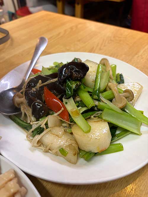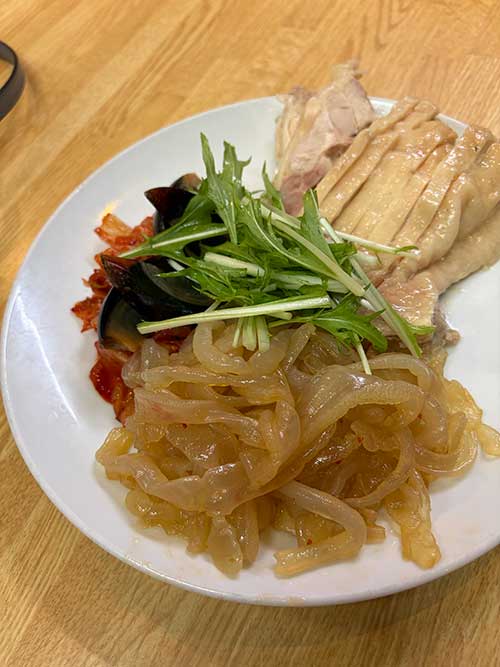 従妹はビール、私はウーロン茶で乾杯。前菜3種盛りもすぐ運ばれてきました。満席の店内ですが、色々オーダーはちゃちゃっとやってきます。