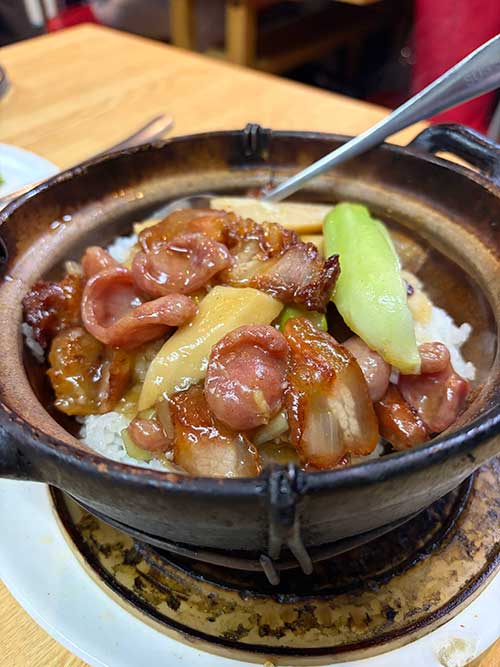 締めは自家製塩漬け豚肉の土鍋ごはん。