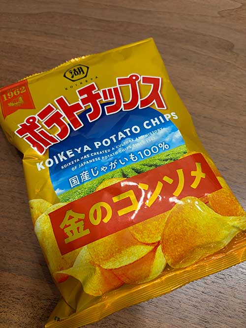 湖池屋ポテトチップス 金のコンソメ。