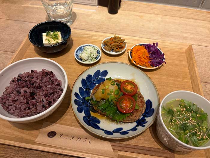ランチはお勤めの方々で混み合う前に、映画の半券チケットの特典でタニタカフェへ。からだ想いのバランス午前〜和だしポン酢のおろしハンバーグ〜1,188円を5%オフにて。おかずがちょこちょことあって、嬉しい構成です。