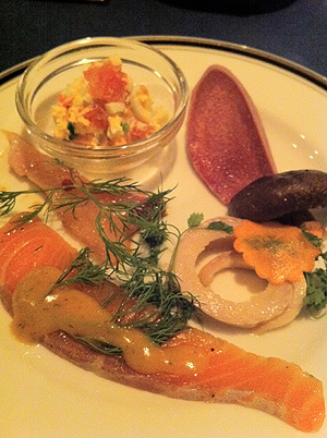 そして教えて頂いた通りに、最初はお魚系の前菜から順番にお皿に取ります。