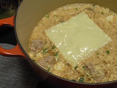 夫が韓国料理屋さんの宴会での鍋のシメで、辛ラーメンが出てきて、