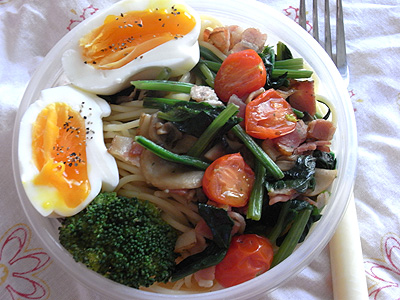 パスタを茹ですぎた次の日のお弁当。