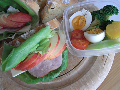 それを受けての、りんご+ハム+チーズのサンドウィッチのお弁当です。