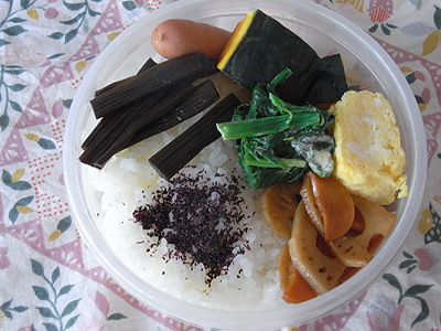 にんじんとれんこんのきんぴらも、かぼちゃの煮物も、卵焼きもほうれん草も