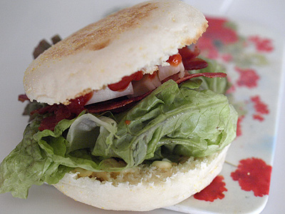 イングリッシュマフィンに、カリカリベーコンと、レタスと、