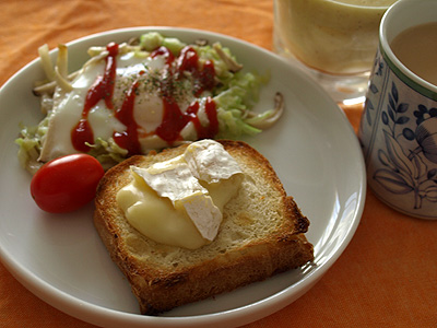 トーストした後、カマンベールチーズを一切れ乗せ、再度また温めました。