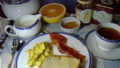 さつまいもブレッド、えのきと人参の卵とじスープ、みかん