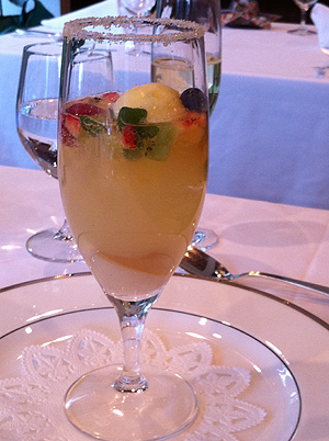 で、夫のグレープフルーツゼリーと季節のフルーツ 密柑シャーベットと共に。