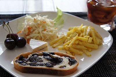 黒胡椒入りのカマンベールとアメリカンチェリー。