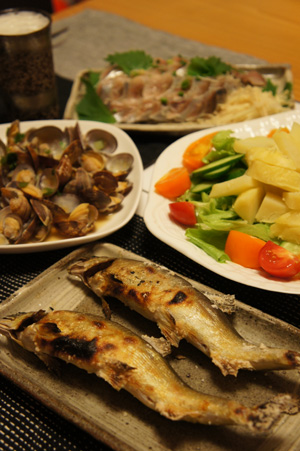 また、アサリもお買い得だったし、青魚の刺身も何か食べたいという夫のために