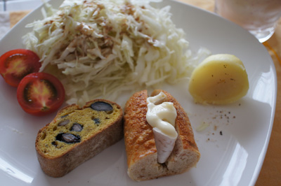 世田谷パン祭りで購入してきた二種類のパンでの、先月の朝食。