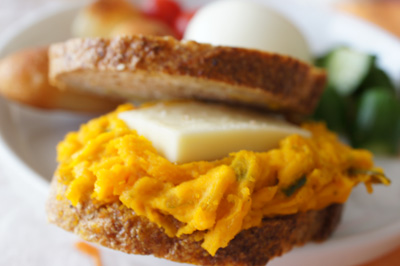 かぼちゃのマッシュにはマヨネーズを和えてなめらかにしていたようです。