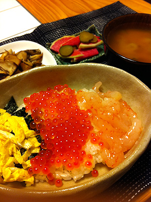 夫が外出した際に、衝動買いしてきたイクラと海老。