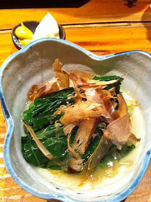 カウンター越しに小鉢を渡されながら「とう菜のおひたしです」と聞こえたので