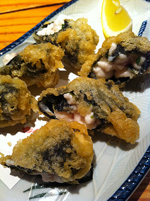 カリカリの衣と海苔の中には、とろりとした白子が。