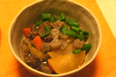 夫の祖母の作った立派な大根もあったので一緒に煮込んで。