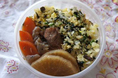 電子レンジで温める前提のお弁当でした。