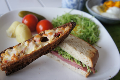 食パンはサワークリームとパストラミビーフ、キャベツの千切りのサンドウィッチ。