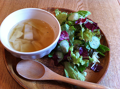 まずはスープとサラダが運ばれてきます。