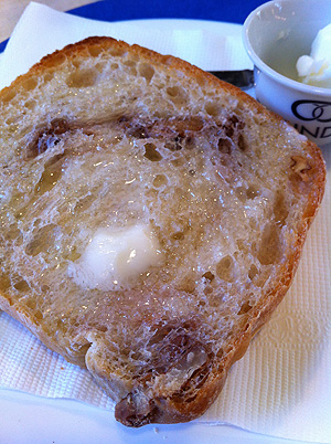 トーストして持ってきてくれるので、バターをたっぷりと塗り、しばし置いておいて