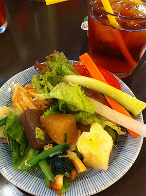 お惣菜は、カウンターで一度だけお皿に自分で盛れるのですが、これが中々難しい。