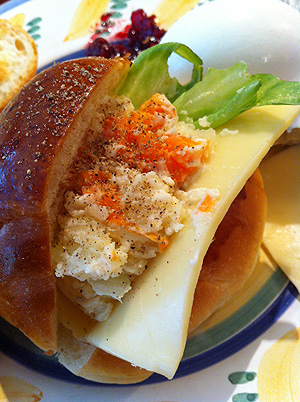 お代わりした一切れも使ってゆで卵とゴーダチーズのサンドウィッチに