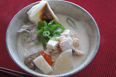 夫が「粕汁仕立てがいい」と云うので、そうしてみました。