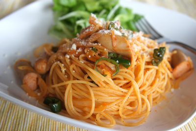 何故なら、夕食は遅くなるかもしれないと思い、パスタを急きょ大目に茹でてしまい、ソースとのバランスが悪くなってしまったから。