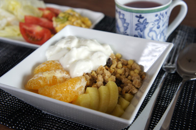 この日は甘夏とゴールドのキウイと自家製のスーパースキムミルクヨーグルトを混ぜて食べました。
