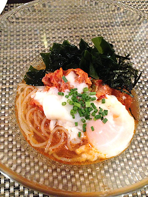 気になって仕方なかった麺をその場で仕上げるコーナーでは、韓国風冷麺をオーダーしてみました。