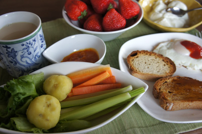 スティック野菜とチンしたとうやというじゃがいもなどには、バナナペッパーのマスタードを付けて。