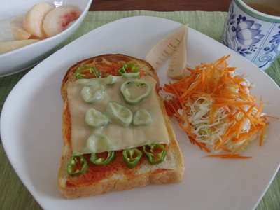 シンプルにグリルする他に、このようにピザトーストのピーマン代わりにしてみました。