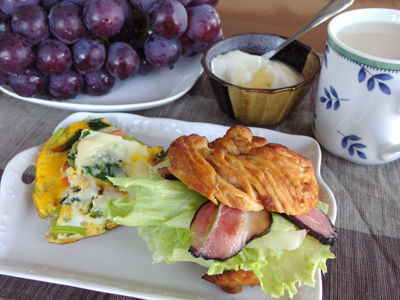 ミルクティーはアールグレイ、自家製ヨーグルトにははちみつを、そしてぶどうは伊豆錦という品種。