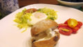 巣籠もり卵は、きゃべつ、にんじん、エリンギで、醤油とミックスペッパーで味付け、ソーセージを添えて。