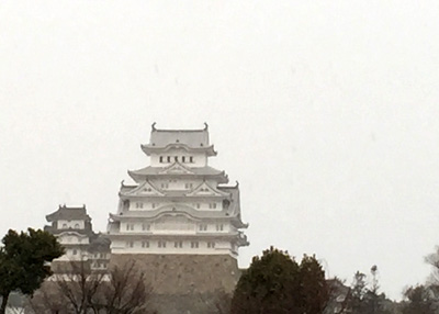 白くお色直しをした姫路城を伺いに行きましたが、雪が舞ってより白かったです。
