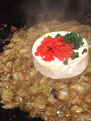カマンベールチーズもんじゃが有名だそうで、冒頭が運ばれてきた状態。