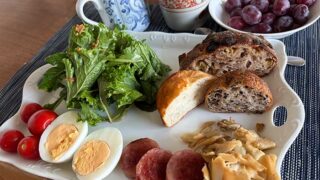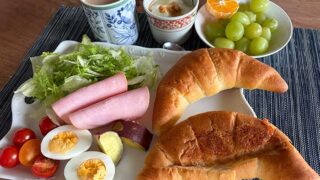 朝食 ポワンエリーニュのパンなど 手前の半分にカットしたパンは、ポワンエリーニュのニダベイユ、チーズたっぷりのパンです。チーズが濃厚で、ワインにも合いそうです。ぶどうは、サンシャインレ... 2025.09.25 朝食