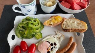 朝食 ゴーヤの塩昆布和えなど 今朝のパンはブレッドワークスのもので。今年は八百屋さんで買うゴーヤがしばしば巨大なことが多いです。食べる量が増えるので、炒めるだけでなく今年は塩昆布和... 2025.08.06 朝食