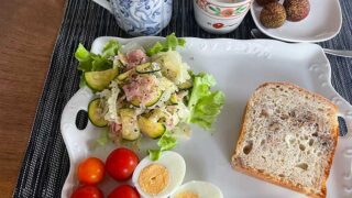 朝食 白ゴーヤのサラダなど 白いゴーヤを夫が見つけて買ってきてくれました。初めてみたなあ。ズッキーニなどと一緒にサラダにして楽しみました。苦味はあまりないので使いやすいかも。台湾... 2025.07.15 朝食