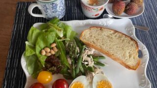 朝食 豆とグリーンアスパラガスのサラダなど サラダは、鶏ささみの量がちょっと少なかったので、大豆の水煮を追加しました。たんぱく質って思ったより摂れないものだなあと日々実感しています。パンはいつも... 2025.06.08 朝食
