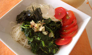 朝食 トマトと納豆の冷製そうめん 冷たいだし汁を張った器にそうめんを入れ、 トマトのざく切りと、納豆を合わせ、海苔を散らして。 納豆を料理に使うのが苦手な夫も、トマトの酸味で... 2008.08.20 朝食