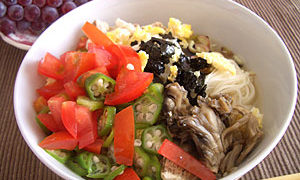 朝食 オクラ+トマトの冷製スープのそうめん オクラ+トマトの冷製スープに、更に具を足してそうめんを入れてみました。 舞茸をさっとレンジで加熱したもの、いり卵、海苔でしたが、 きっと冷... 2008.08.16 朝食